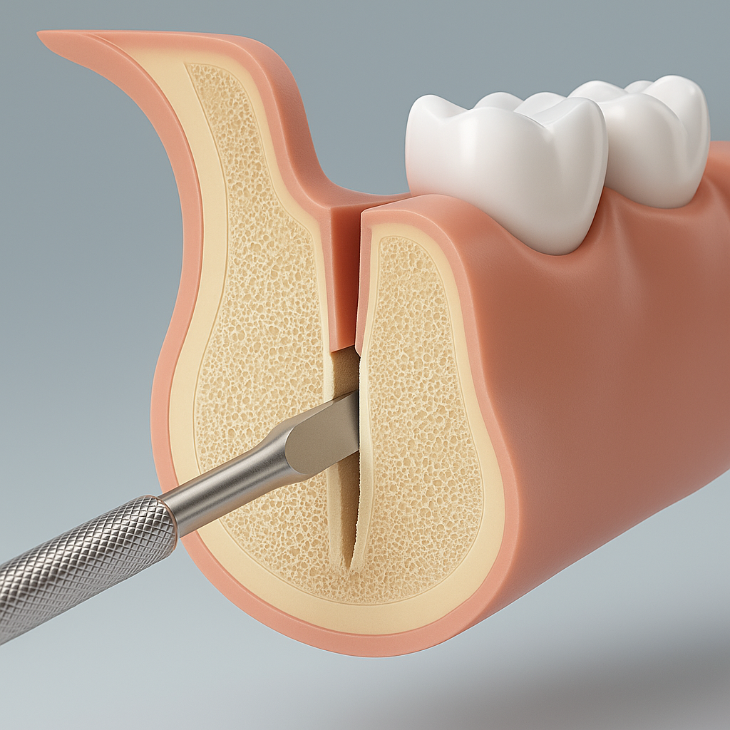 Diese Techniken verbreitern den Kieferkamm ohne zusätzliche Knochenentnahme. In bestimmten Fällen können Implantate direkt gesetzt werden – mit minimalem Eingriff und hoher Erfolgsquote.